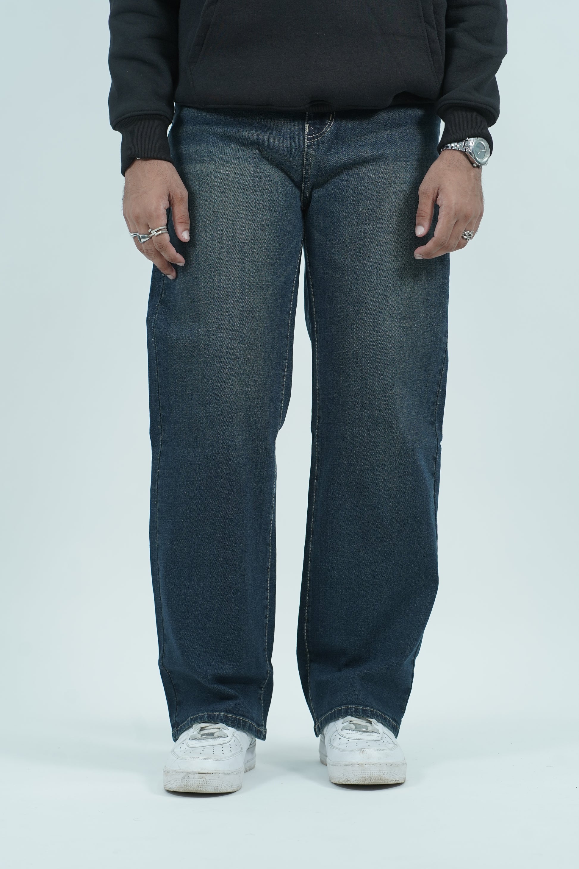 These Vintage Fade Wash Jeans feature a naturally worn-in look with soft fading along the front and thighs. The relaxed, wide-leg fit gives them a comfortable drape, perfect for everyday wear. Their simple, minimal design makes them easy to style while adding a touch of vintage character to any outfit.